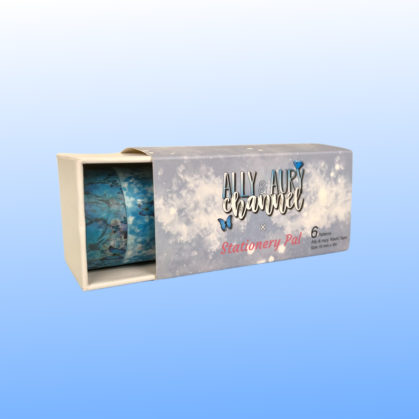Nel kit troverai 6 nastri adesivi sulle tonalità del blu con disegnati i simboli distintivi del nostro canale: Logo Ally&Aury, Cuore, Diamante e Farfalla.